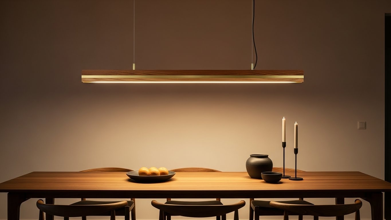 Minimalist bir dairenin yemek alanında, Atölye Çakır aydınlatmanın uzun, ince ve lineer tasarımlı metal sarkıtları tercih edilir. Bu sarkıt, masanın tüm uzunluğu boyunca homojen bir ışık yayarak, yemeğin veya sohbetin odak noktasını belirler. Metalin mat siyah veya koyu bronz rengi, mekanın açık renkli duvarları ve ahşap zeminleriyle güçlü bir kontrast oluşturarak modern bir estetik sunar.