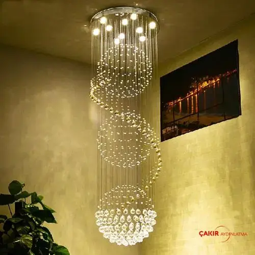 Eğer mekanınızın tavanı alışılmışın dışında yüksekse, dikey formu destekleyen "Waterfall" (Şelale) veya "Spiral" modelleri tercih edilmelidir. Tavandan aşağıya bir ışık yağmuru gibi süzülen bu tasarımlar, dikey aksı bir sanat eserine dönüştürür.